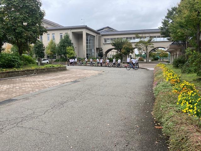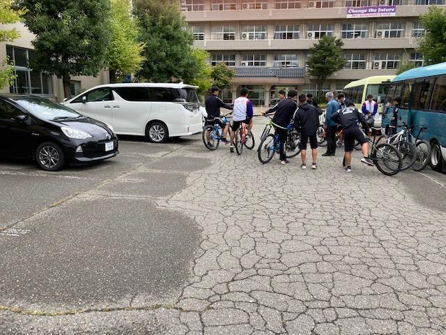 マウンテインバイク実習に向かう3年生スポーツ科学コースの生徒達