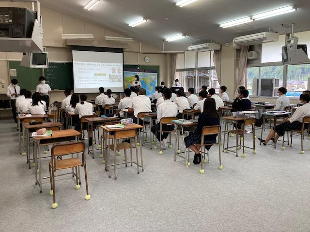 26日(月)7限目本校の総合的な探究の時間「あじさい」で2年生が、これまで研究した「鶴来町の課題」について発表しました。発表に慣れていない生徒もいて、ぎこちなく感じる場面もありましたが、堂々と発表する生徒も見られ、生徒達にとってはとても良い経験になりました。