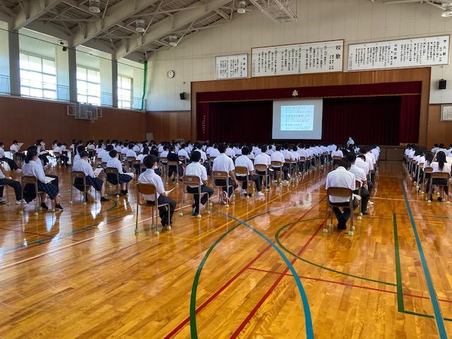 月曜日のLHで、今月30日に行われます手取川歩行の事前学習が行われました。生徒達は岡崎先生や生徒自身の発表に真剣に取り組んでいました。