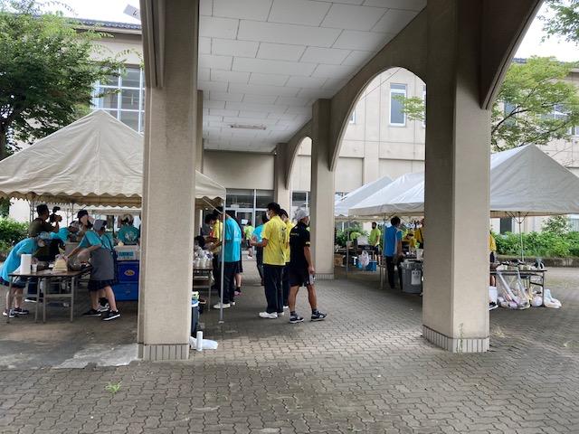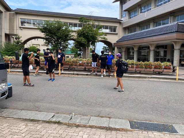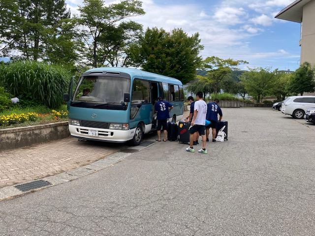出発の準備をするラグビー部員