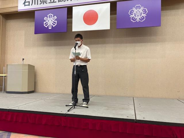 昨日行われました本校の同窓会総会で、ジャズバンド部がアトラクションで演奏を披露してくれました。参加した同窓生もすばらしい演奏を堪能しました。また野球部主将の廣田君が、野球部の快進撃に際しましての卒業生からの差し入れやご声援に直接謝辞を伝えました。廣田君のユーモアを交えたお話に会場は大いに盛り上がりました。尚、廣田君は石川県高等学校野球連盟から県の優秀選手に選ばれました。