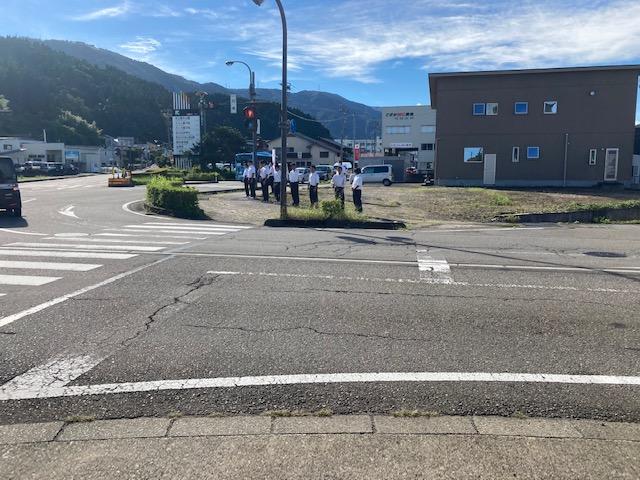 2022年9月7日 08時33分いよいよ就職試験が始まります。3年生の希望者が鶴来警察署前で元気に挨拶をしてくれました。