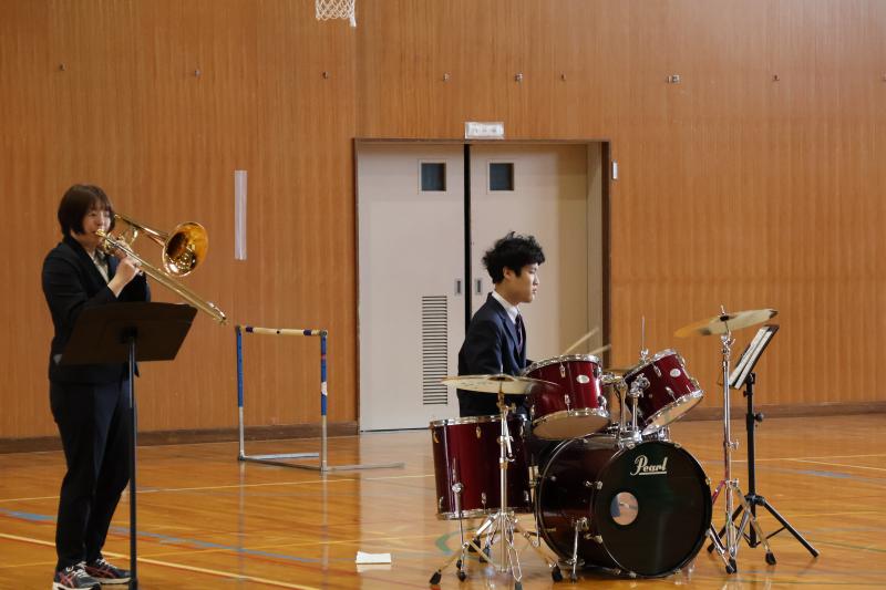 演目は、候補曲の中から部員で話し合って決めました。高齢者の方にも喜んでもらえるようにと、ゆったり系の「花は咲く」とノリノリ系の「マツケンサンバⅡ」を新曲として決めました。本番では、それらを含めた計4曲(約20分)を演奏しました。