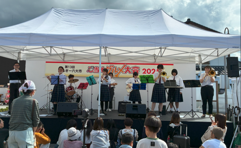 初めての依頼演奏だったこともあり、部員たちはとても緊張していました。また、屋外ならではの風などのハプニングもありましたが、30分間の本番をやりきることができました。今回は鶴翔祭の時と同じ演目(6曲・30分)でしたが、学校の外で、いろいろなお客さんの前での演奏だったので、部員たちは以前とは違った気付きを得ていたようでした。