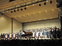 県内から78名の生徒が参加し、郡山の合唱部員、管弦楽部員を含め総勢230名の演奏会となりました。