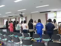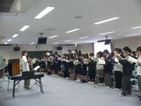 新入生を迎えて現在練習中の曲は映画「天使にラブソングを」の挿入歌「ヘイル・ホーリー・クィーン」と