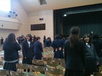 ご飯の後は顧問の伴奏に合わせてプレゼント交換。最後にケーキを食べて会を終えました。