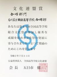 【合唱部】全国総文文化連盟賞受賞