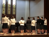 2019年6月3日 11時31分 今日は総文明けの日曜日でしたが、今年初めてお声がかかり、美川文化会館で開催されたはくさん合唱祭に出演させていただきました。本校を含めて14団体の合唱の演奏があり、白山市でこんなにたくさんの合唱団があったことに驚きました。本校は総文で歌ったものとほとんど同じ曲目でしたが、総文よりもリラックスして温かい雰囲気の中で演奏することができました。非常勤講師の佐渡先生が応援に駆けつけてくださり部員もとても喜んでいました。次回は7月7日(日)クレインで開催される鶴来地区芸能音楽祭に出演予定です。多数のご来場お待ちしています!開演は13:00、本校の出番は13時15分です。