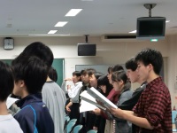11月に行われた秋季合宿合唱講習会の時に、東京からボイトレの講師としておいでいただいた羽山先生が、なんと本校でも特別レッスンをしてくださるということで、本日午後お迎えしました。普段なかなか個人でお呼びできるような先生ではないのですが、明日から他校のレッスンに呼ばれているとのことで、合宿時に本校の男子生徒が印象に残っていたというご縁もあり、先生のご厚意により実現しました。3時間休憩なしのレッスンでしたが、大変わかりやすく非常に中身の濃い時間となりました。この成果をぜひ忘れずに来月行われるヴォーカルアンサンブルコンテストで発揮してほしいと思います。