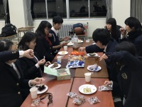 2学期鶴翔祭から始まり各演奏会やコンクールが一段落したということで、期末考査1週間前を控えた本日ミーティングを行いました。ちょっとしたおやつをつまみながら、副顧問の沢田先生も交えて、各種演奏会や合宿、コンクールについての反省を一人一人が述べていきました。他校との差を受け止めたり、観客の反応を気にしたり、マイナスな発言も多かったですが、全体として確実にレベルはアップしているので、前向きに頑張ってもらいたいです。今後は12月17日のユースコーラスコンサートと1月のアンサンブルコンテストに向けて、より一層練習に励んでいきましょう。