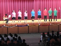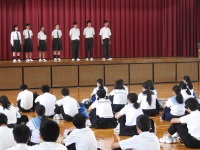 当日は「secret base~君がくれたもの~」「ルージュの伝言」「残酷な天使のテーゼ」「Blessing」の4曲を披露し、後半の2曲は先生方にもご協力いただきました。人数が少ないので声量には課題が残りましたが、多くの先生や生徒に「よかった」「上手かった」と言われ、某先生は「近年で一番上手いんじゃないか」とおっしゃってくださり、今後も楽しみにしていると声をかけてもらいました。マイナスなイメージばかり先行してしまう部員たちですが、お褒めの言葉は素直に受け取って、今後もますます練習に励んでもらいたいと思います。