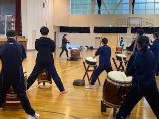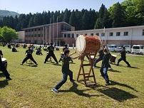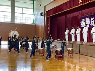和太鼓部、初の壮行式での演奏。