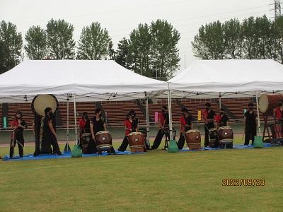 私たち和太鼓部は、9月23日に行われた「太陽と緑に親しむ健民祭」で3年生との最後の演奏をしました。叩いた曲は、宴、鶴聲、疾風の3曲です。残念ながら悪天候の中の演奏となり太鼓の配置が急きょ変更になってしまい、練習のようにはいきませんでしたが、みんなそれぞれが自分のパートを叩ききり、最高の演奏となったと思います。これからは、先輩(3年生)がこられなくなる日が多くなりますが、その分も2年生が中心となって1年生を引っぱっていきたいと思います。
