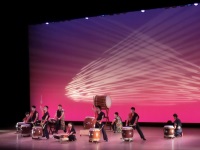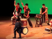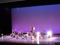 今回の内容は盛りだくさんです。まず各太鼓の紹介を行い、2曲演奏しました。「鶴聲、百花繚乱」です。曲が始まるとスタッフの方が手拍子をしていただいたおかげで見てくださった皆さんの手拍子が始まりました。