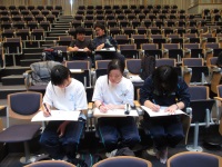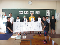 和太鼓部、書道部による日本文化体験交流会が7月20日(金)午後一時半から本校で行われました。北陸先端科学技術大学院大学客員研究員でスペイン出身のリエスコ・アドリアンさん夫婦に伝統文化の魅力を紹介しました。