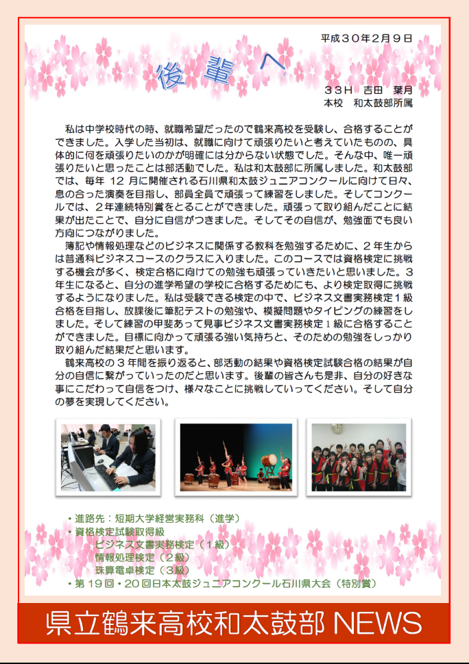ぜひ、鶴来高校へ連絡お願いします。