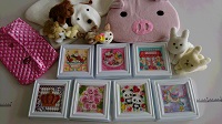 ピンプッシュというビーズを虫ピンで台紙に留めていく作品を中心に飾りました。