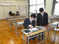 2年生が新入生に「手本」を書いてあげ,新入生はそれを