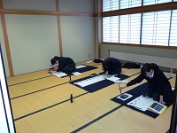 新年を迎えてから入部したいと2人の見学者が書道体験をした。