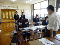 書道部の心得を聴いた後,揮毫を観る!