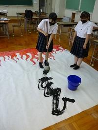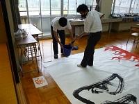 1年生は「大筆」で大きな作品を書くのが