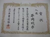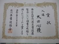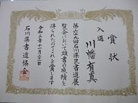 「石川県民書道展」の入賞の賞状を頂きました。