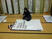 ↑ 臨書部門の漢字の作品を仕上げた宮嶋さん、集中力が凄い!
