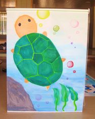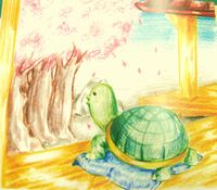 つるぞうは3年生が、カメは1年生たちが協力して描きました。