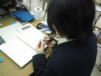完成した作品には、仕上げとして自分の名前のハンコを押します。