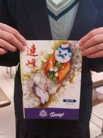 ちらちらと降る粉雪。石畳を歩くつるぞう。冬の匂いが今にもただよってきそうな素晴らしい表紙に仕上がりました。裏表紙は桜を楽しむカメの様子が和やかに描かれています。