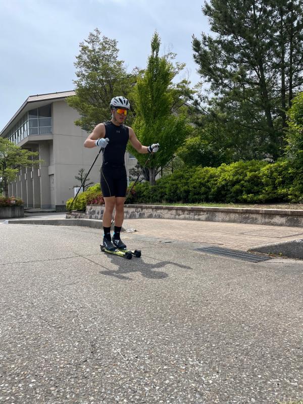 クロスカントリーセクションも、ローラースキーを使用したトレーニングを行いながら、より雪上に近い練習を行っています。