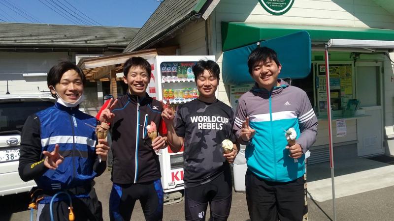 私たち、アルペン・クロスカントリー両顧問も、平成13年度に青森県で開催されたインターハイ以来の学校対抗総合での入賞を果たすべく、心を一つにマルガージェラートで仲良く写真を撮りました。本来であれば、二人でアイスを食べ合いするべきですが、新型コロナウイルス感染症拡大防止の観点から、今回は控えることとしました。。