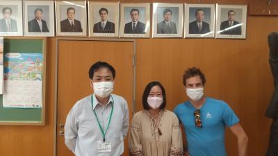 奥さんの一時帰国に合わせて来日され、ご親戚が本校歴代校長の、「田村建二」さんで、現中川校長もご縁を感じておられました。