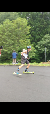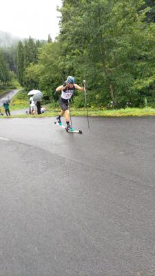 強化合宿の成果を持ち、8月中旬に、秋田県鹿角市で行われました「FISローラースキー鹿角大会」に出場してきました。あいにくの雨天が続くシリーズでしたが、関係者の献身的な運営により、レースを成立して頂きました。心より感謝申し上げます。さて結果ですが、残念ながら入賞とはいきませんでしたが、更なるパワーアップを図り、来る冬への備えをしていきたいと思います。