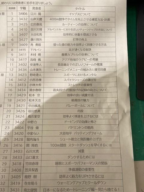 昨日から4日に分けて、スポーツ科学コースの生徒達がそれぞれのテーマに沿って発表を行いました。
