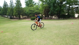 でも、暑い中でも外でスキーのイメージトレーニングとしてマウンテンバイクでのトレーニングも何度か行いました。部員も少しポールをくぐるイメージがつかめたように思います。夏休みが終わるとすぐにシーズンです。少しでも良い状態で入りたいと思います。