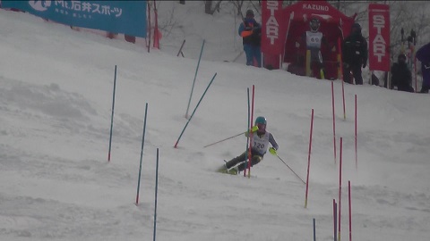 2本目 難度の高いセットを森田が何とか果敢に滑りきり8位、入賞のラインまで順位を上げることが出来ました。前波、岡田はともに難しいところでコースアウトでしたが、成長の跡が見られた滑りでした。明日は最終日女子のSL種目が行われます。