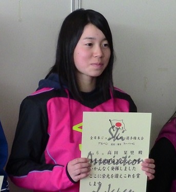 高校選抜大会(富良野スキー場)が15日で終了しました。全国の強豪が揃う大会でSG2位、GS2位と続いた高田は最終日のSLも果敢にすべりましたが、惜しくも2本目で転倒、順位なしに終わりました。しかし女子個人総合で2位と見事な成績をおさめて終了することができました。