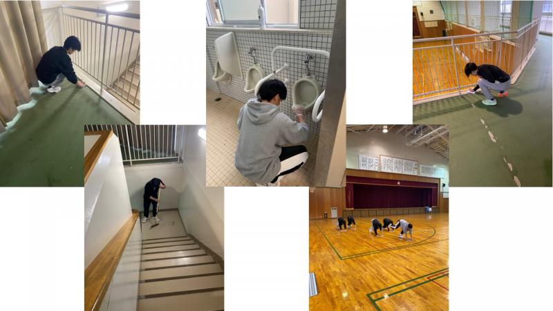 その後部員と一緒に、いつも使わせて頂いている体育館とトイレ等、周辺施設の掃除を行いました。少ない人数ですが一人ひとりが人一倍頑張ることで、とても綺麗にしてくれました。