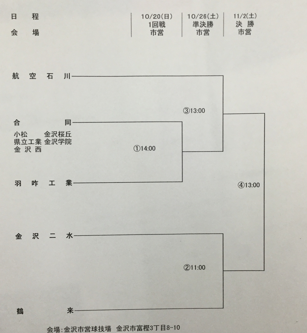 合同チームは金沢西、羽咋工業、県立工業、桜丘、小松、金沢学院と鶴来で共に戦うことになります。