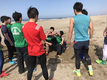 体力測定終了後、内灘ビーチで下半身強化メニューを実施しました。