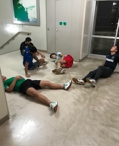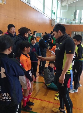 タグ交流会中に上野コーチ(実況担当)よりインタビューをうける小学生たち