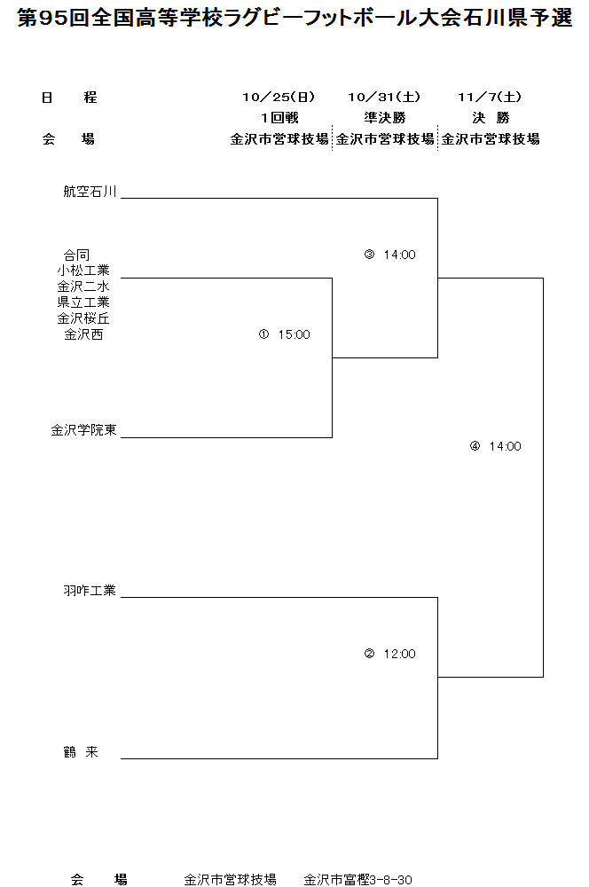 今週末の第95回全国高等学校ラグビーフットボール大会石川県予選に