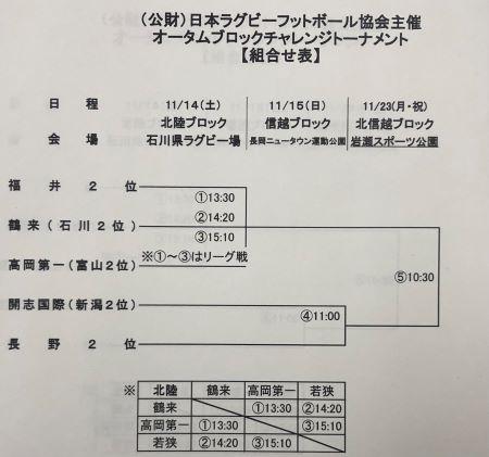 今年度の花園は100回記念大会のため、北信越地区の各県準優勝チームによるトーナメント「オータムブロックチャレンジ」が開催されます。