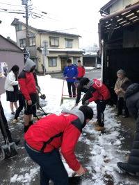 地域のお年寄りのお宅を訪問し、除雪をおこないました。