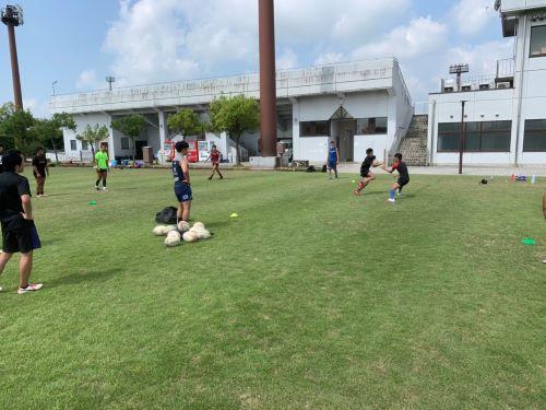 スポ科体験入学では、中学生と一緒にタッチフットなどの練習を行いました。選手たちも楽しく、先輩らしい姿で練習に取り組みことができました。
