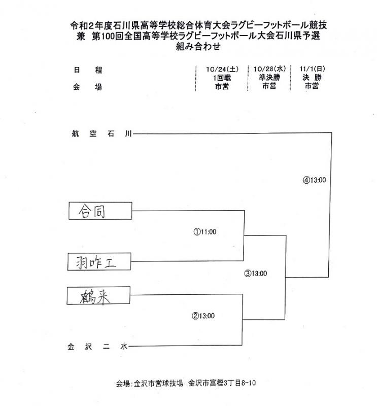 今年度は鶴来、航空石川、金沢二水、羽咋工業、石川合同の5チームによるトーナメントとなります。