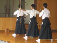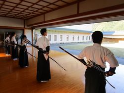 射技および、体配(道場における足運びや所作)も評価の対象となるため、一つ