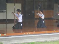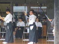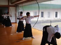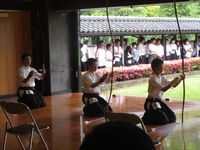 連日の猛暑にも負けず部員はひたすらに弓を引いています。